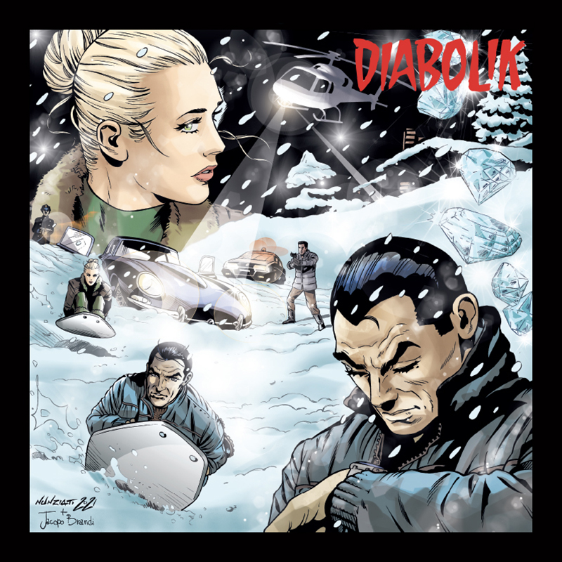 13 illustrazioni inedite realizzate ciascuna da un diverso disegnatore per festeggiare il 60° anno di Diabolik.
