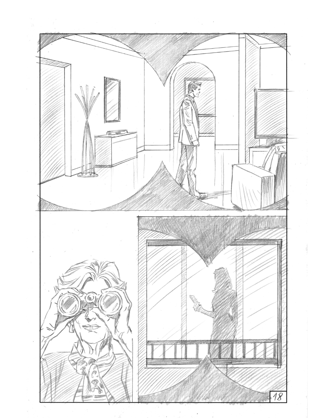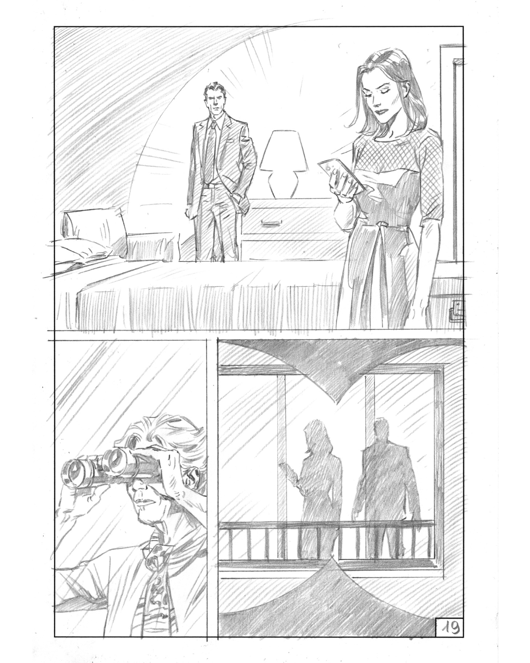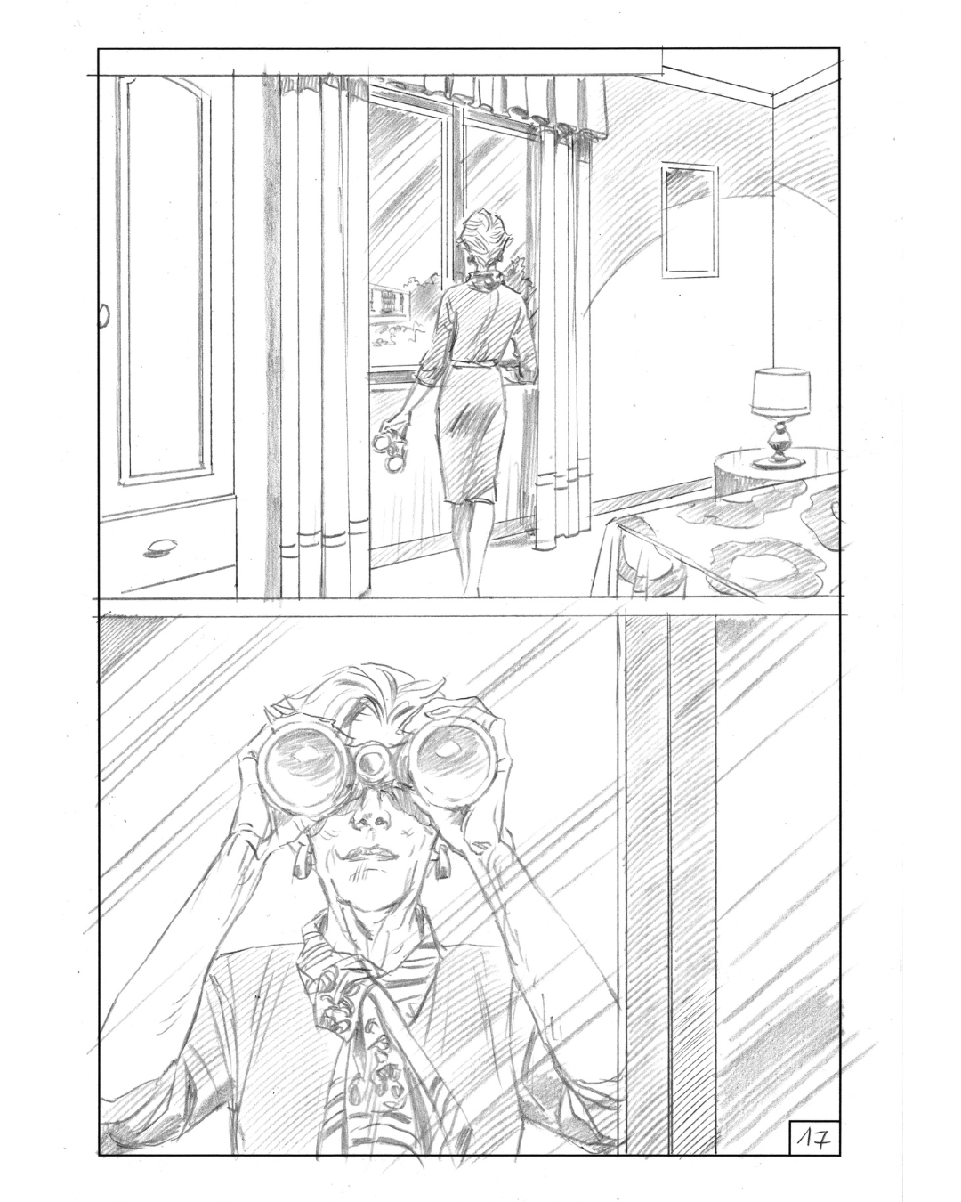 Vi mostriamo alcune tavole a matita disegnate da Sandro Giordano per l'Inedito di dicembre 2025: "Finestra sul delitto".
